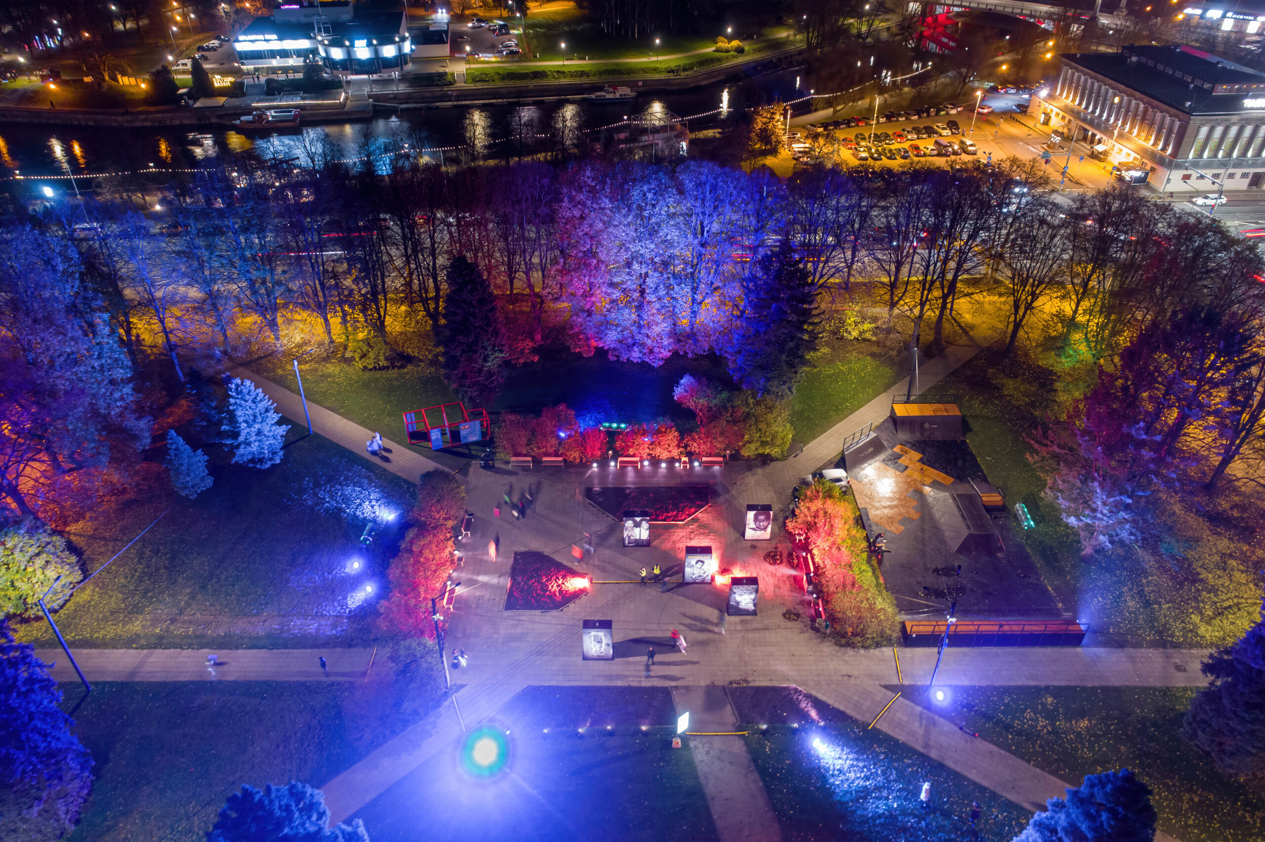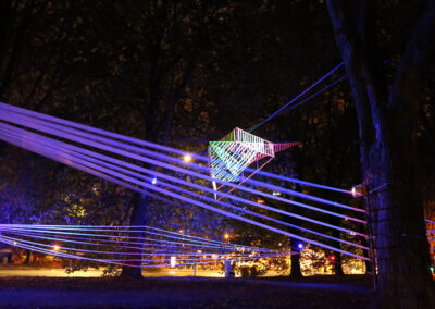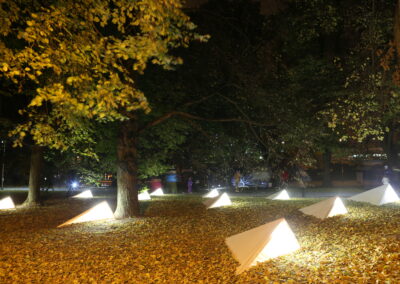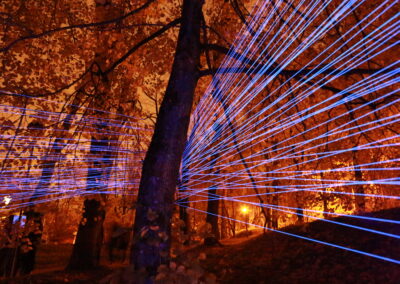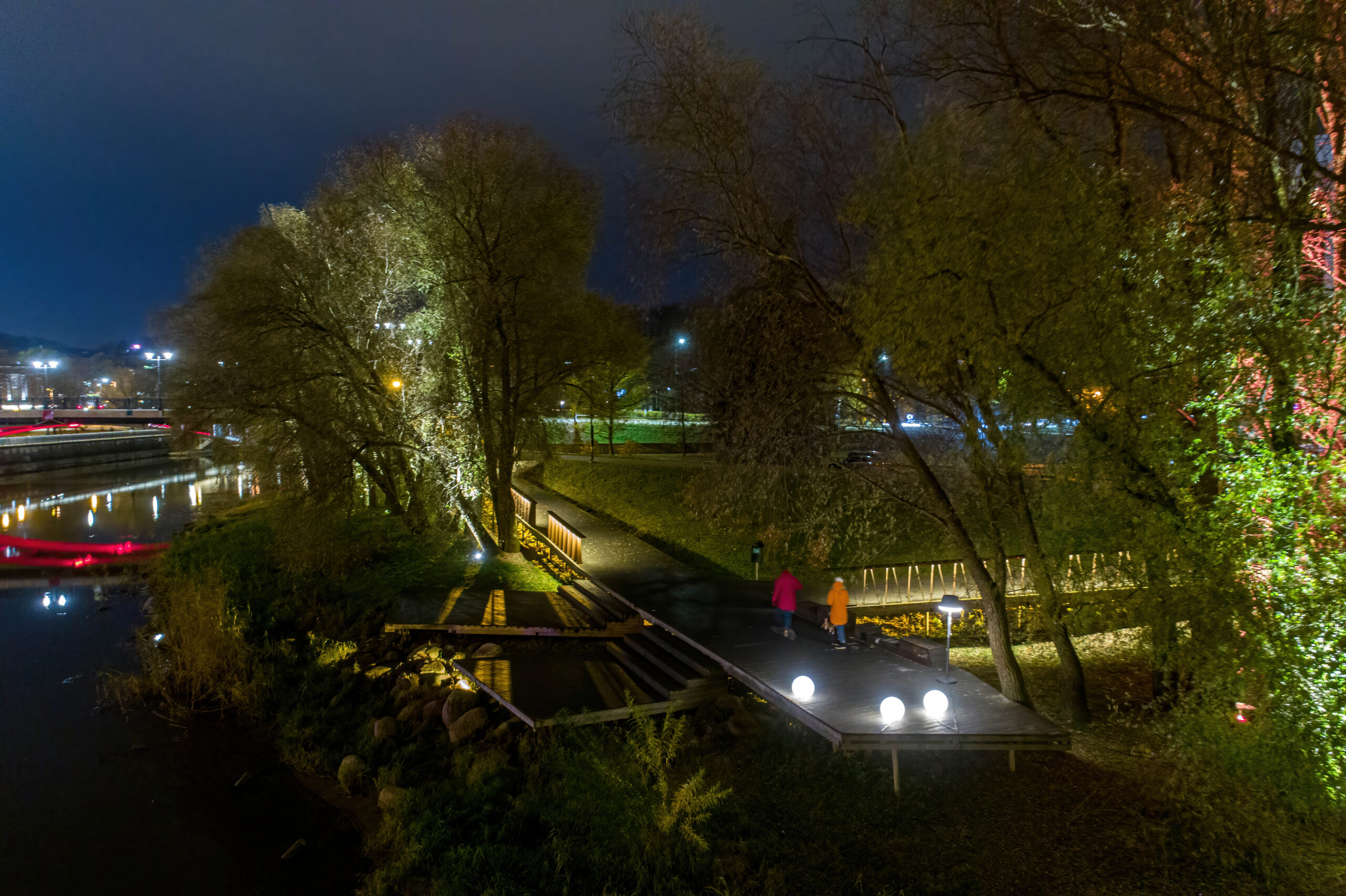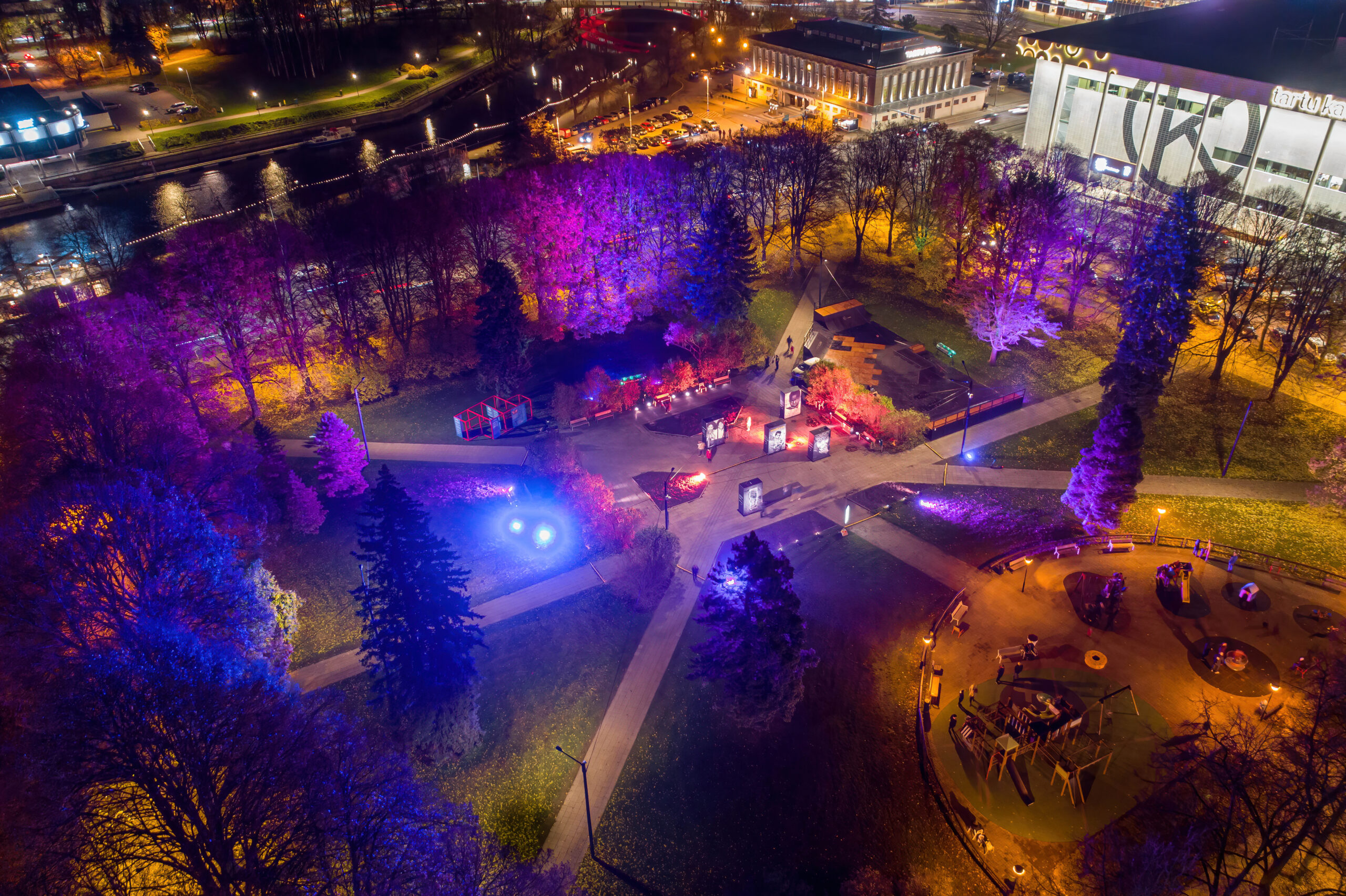 TAVA2024 valgusinstallatsioone eksponeeriv kese asub Tartu Ülikooli botaanikaaias ja liigub mööda vanalinna üles Toomemäele, Toomkiriku varemetesse.