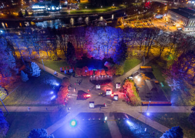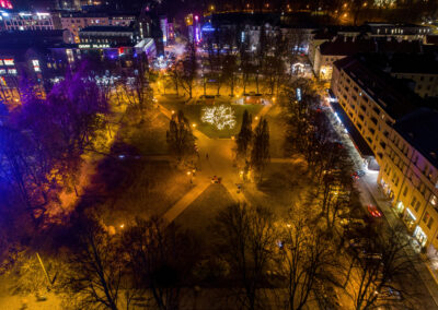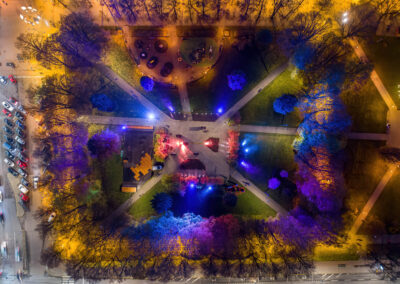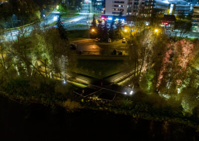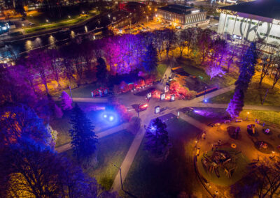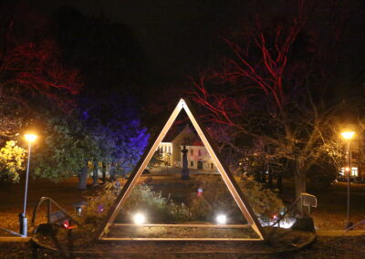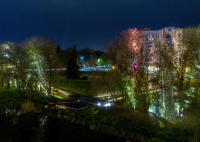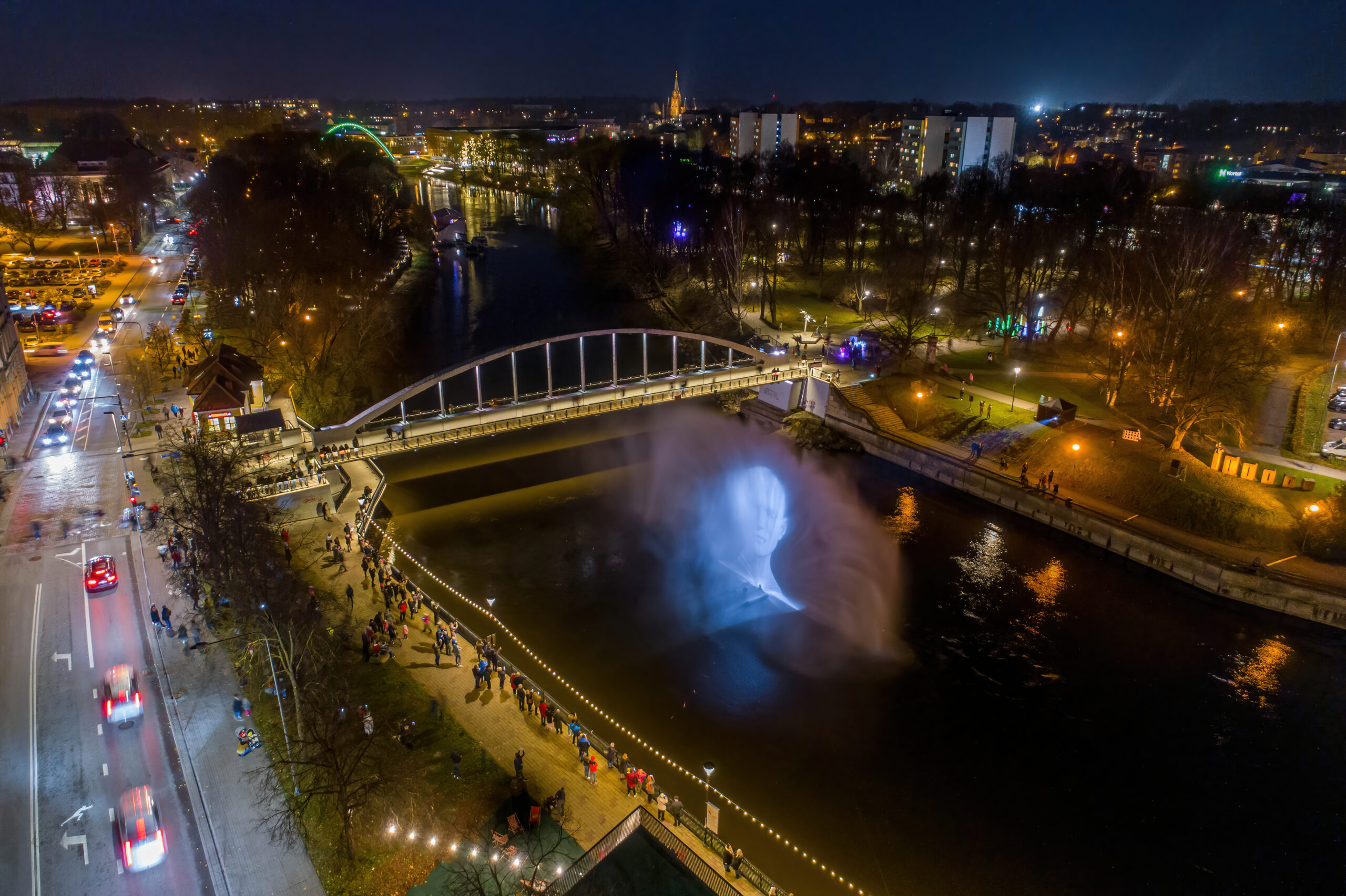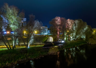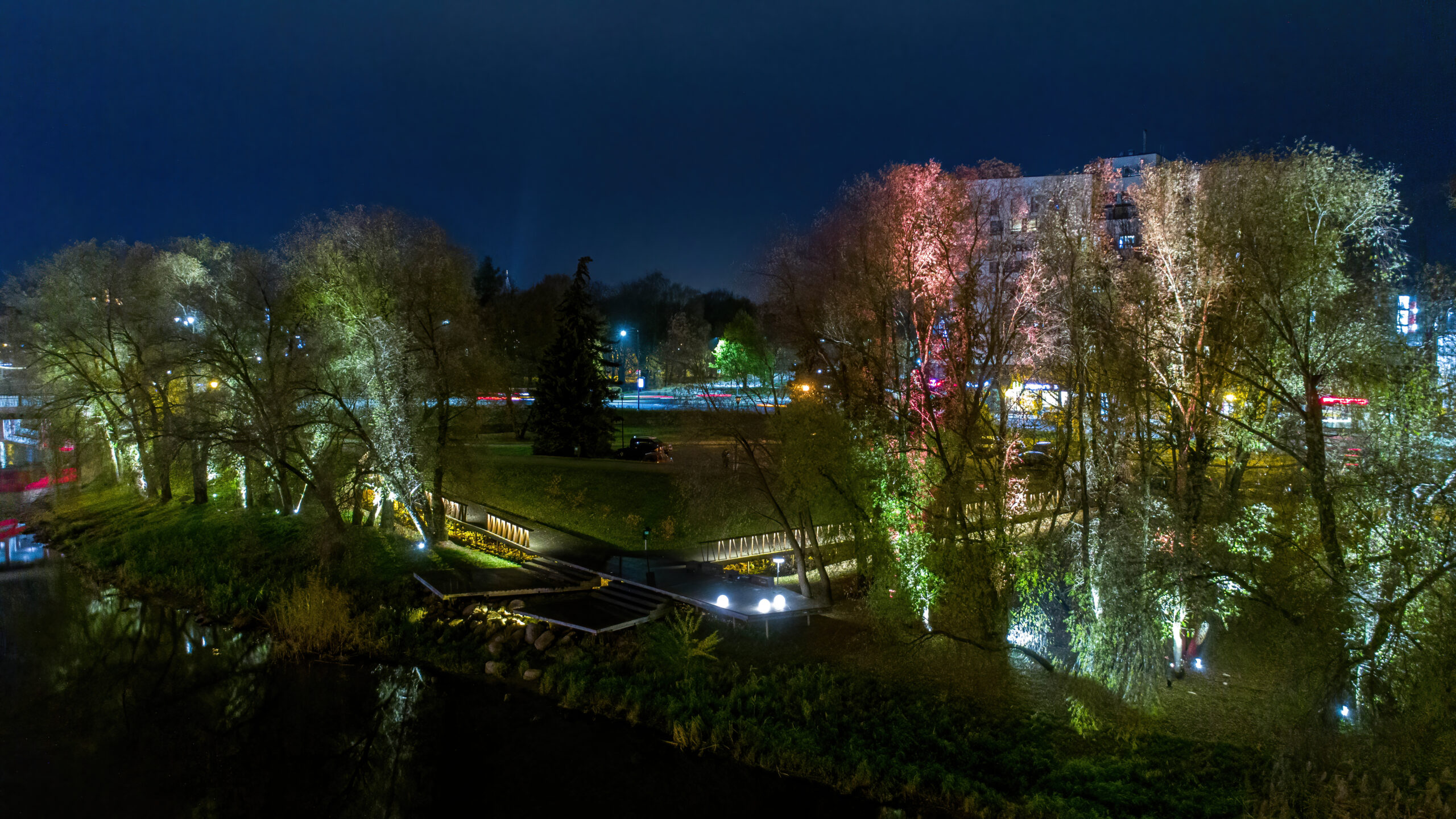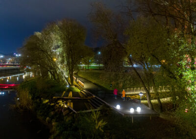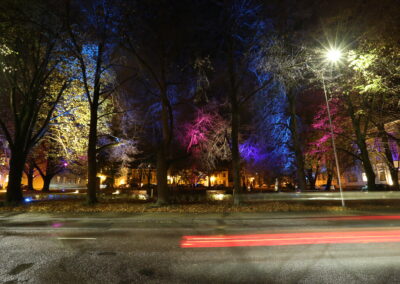 TAVA2024 valgusinstallatsioone eksponeeriv kese asub Tartu Ülikooli botaanikaaias ja liigub mööda vanalinna üles Toomemäele, Toomkiriku varemetesse.